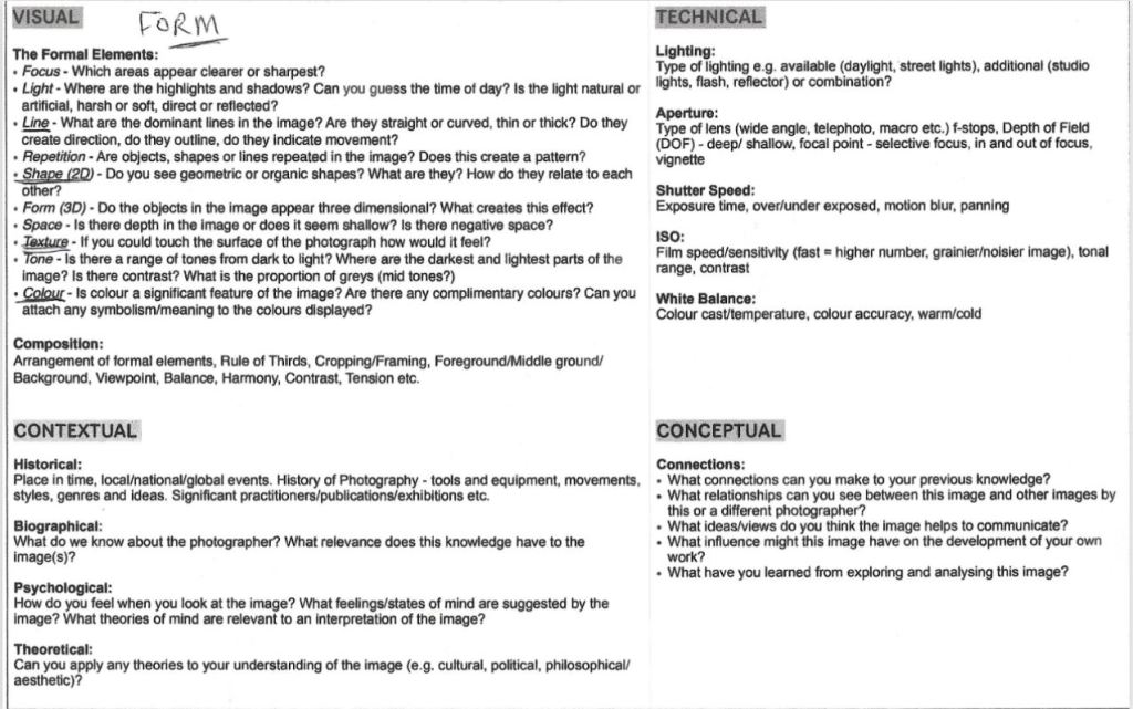 Use keywords to describe the images you make for your assignments: How to critique a photograph and the language of the photograph is something I am still trying to get to grips with. Using the framework given to me by my tutor should help in my next assignment: